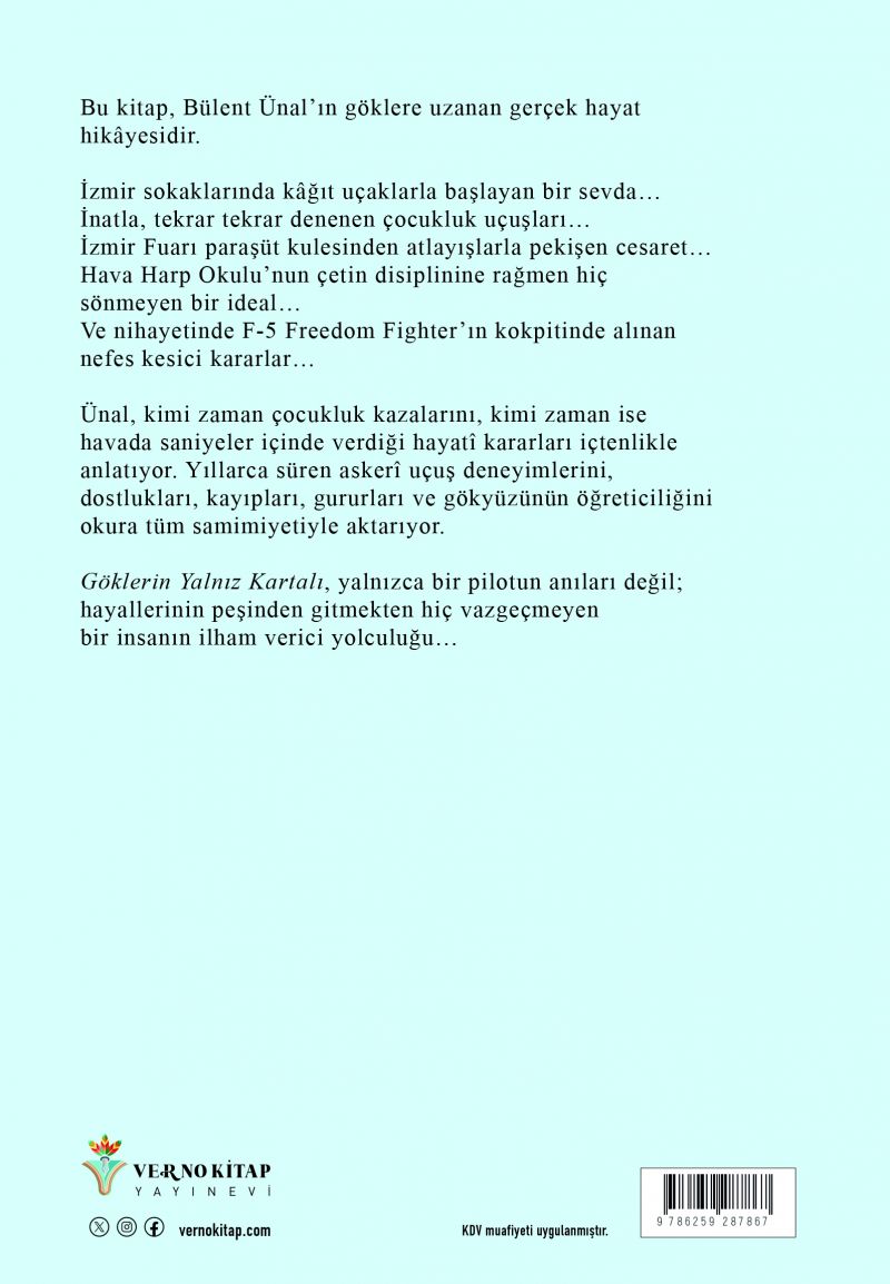 Göklerin Yalnız Kartalı, yalnızca bir pilotun anıları değil; hayallerinin peşinden gitmekten hiç vazgeçmeyen bir insanın ilham verici yolculuğu…