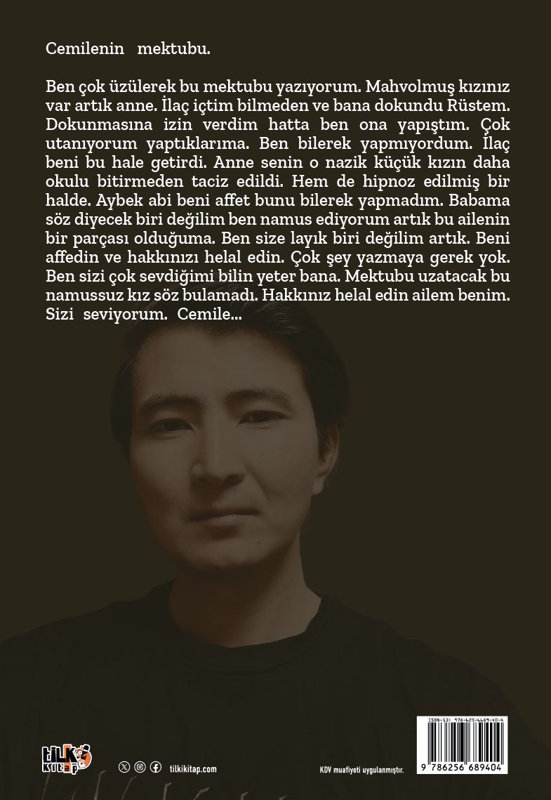 Ben çok üzülerek bu mektubu yazıyorum. Mahvolmuş kızınız var artık anne. İlaç içtim bilmeden ve bana dokundu Rüstem. Dokunmasına izin verdim hatta ben ona yapıştım. Çok utanıyorum yaptıklarıma. Ben bilerek yapmıyordum. İlaç beni bu hale getirdi. Anne senin o nazik küçük kızın daha okulu bitirmeden taciz edildi. Hem de hipnoz edilmiş bir halde. Aybek abi beni affet bunu bilerek yapmadım. Babama söz diyecek biri değilim ben namus ediyorum artık bu ailenin bir parçası olduğuma. Ben size layık biri değilim artık. Beni affedin ve hakkınızı helal edin. Çok şey yazmaya gerek yok. Ben sizi çok sevdiğimi bilin yeter bana. Mektubu uzatacak bu namussuz kız söz bulamadı. Hakkınızı helal edin ailem benim. Sizi seviyorum. Cemile...