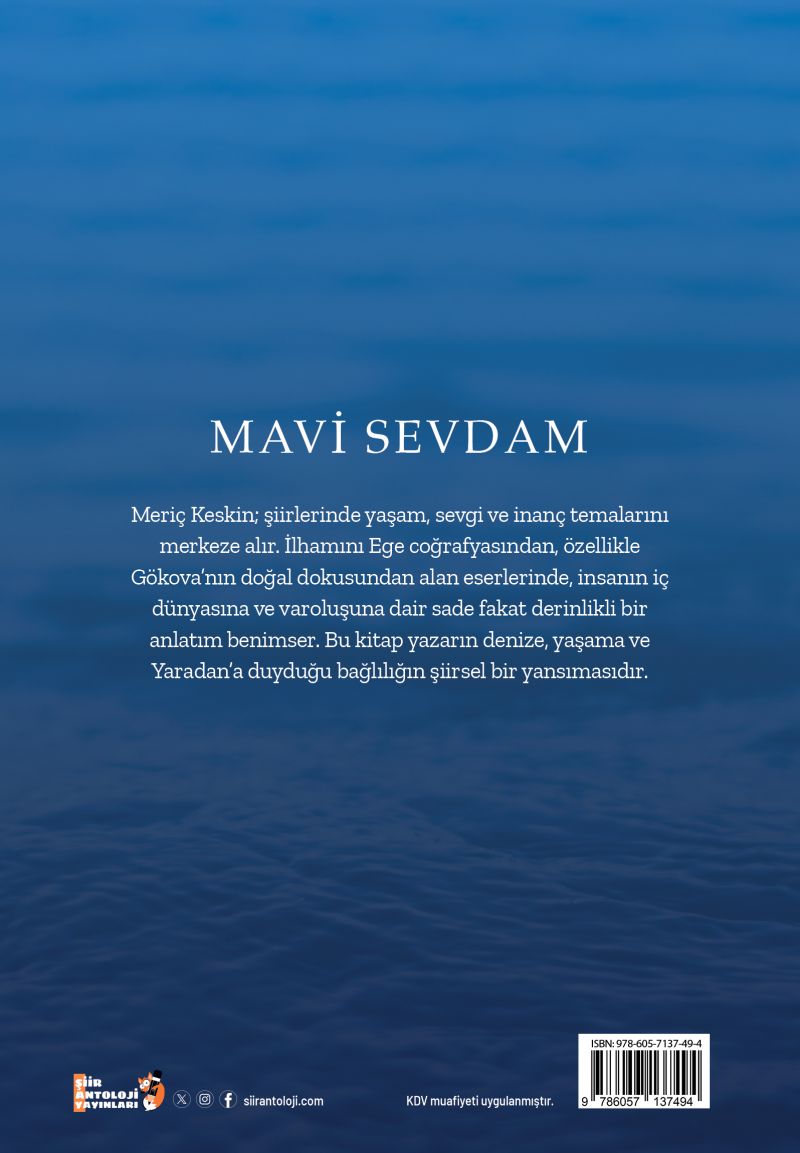 Meriç Keskin; şiirlerinde yaşam, sevgi ve inanç temalarını merkeze alır. İlhamını Ege coğrafyasından, özellikle Gökova’nın doğal dokusundan alan eserlerinde, insanın iç dünyasına ve varoluşuna dair sade fakat derinlikli bir anlatım benimser. Bu kitap yazarın denize, yaşama ve Yaradan’a duyduğu bağlılığın şiirsel bir yansımasıdır.