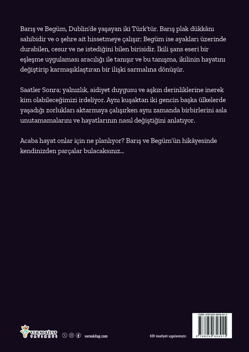 Saatler Sonra; yalnızlık, aidiyet duygusu ve aşkın derinliklerine inerek kim olabileceğimizi irdeliyor. Aynı kuşaktan iki gencin başka ülkelerde yaşadığı zorlukları aktarmaya çalışırken aynı zamanda birbirlerini asla unutamamalarını ve hayatlarının nasıl değiştiğini anlatıyor.
