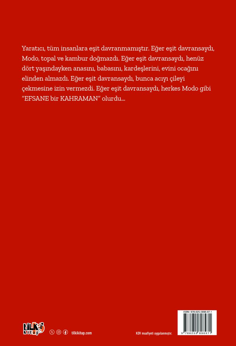 Yaratıcı, tüm insanlara eşit davranmamıştır. Eğer eşit davransaydı. Modo, topal ve kambur doğmazdı. Eğer eşit davransaydı, henüz dört yaşındayken anasını, babasını, kardeşlerini, evini ocağını elinden almazdı. Eğer eşit davransaydı, bunca acıyı çileyi çekmesine izin vermezdi. Eğer eşit davransaydı, herkes Modo gibi “EFSANE bir KAHRAMAN” olurdu…