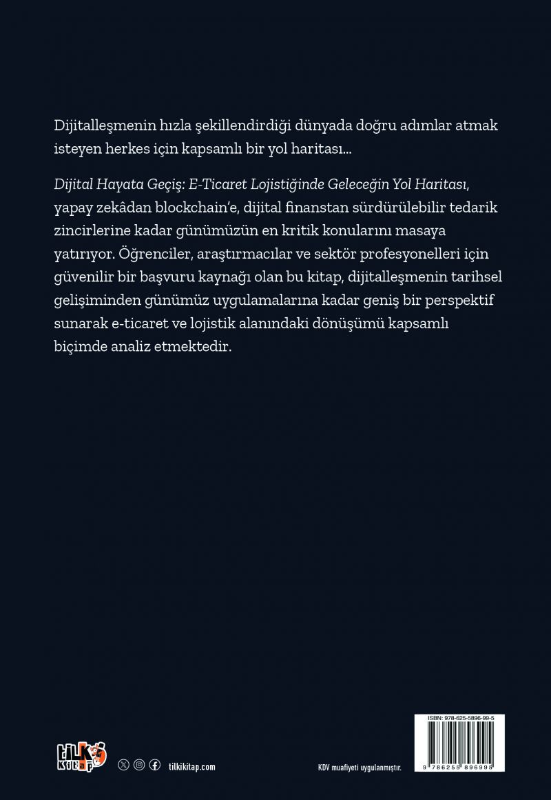 Dijital Hayata Geçiş: E-Ticaret Lojistiğinde Geleceğin Yol Haritası, yapay zekâdan blockchain’e, dijital finanstan sürdürülebilir tedarik zincirlerine kadar günümüzün en kritik konularını masaya yatırıyor. Öğrenciler, araştırmacılar ve sektör profesyonelleri için güvenilir bir başvuru kaynağı olan bu kitap, dijitalleşmenin tarihsel gelişiminden günümüz uygulamalarına kadar geniş bir perspektif sunarak e-ticaret ve lojistik alanındaki dönüşümü kapsamlı biçimde analiz etmektedir.